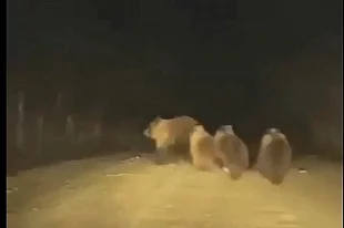 В одной из деревень Башкирии засняли забег медведицы с медвежатами