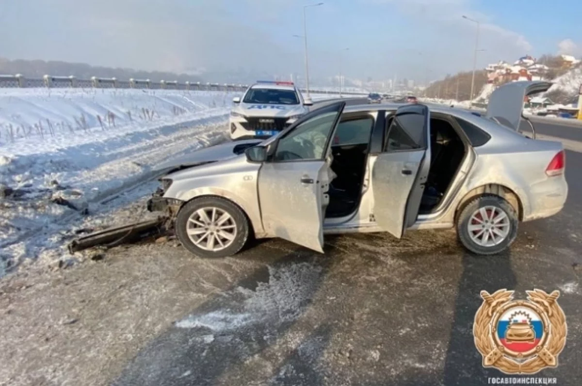 В Уфе на улице Пугачева автомобиль Folkswagen Polo врезался в электроопору. За рулем находился 29-летний водитель.