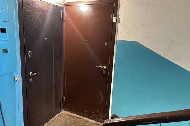 Подъезд обычный, ничем не примечательный. На двери квартиры, где живет семья, снизу было небольшое пятно — как-будто в нее кто-то пнул. Периодически выходили и заходили сотрудники правоохранительных органов.