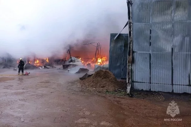 За Колхозным рынком в Уфе загорелся ангар на площади 800 кв. метров