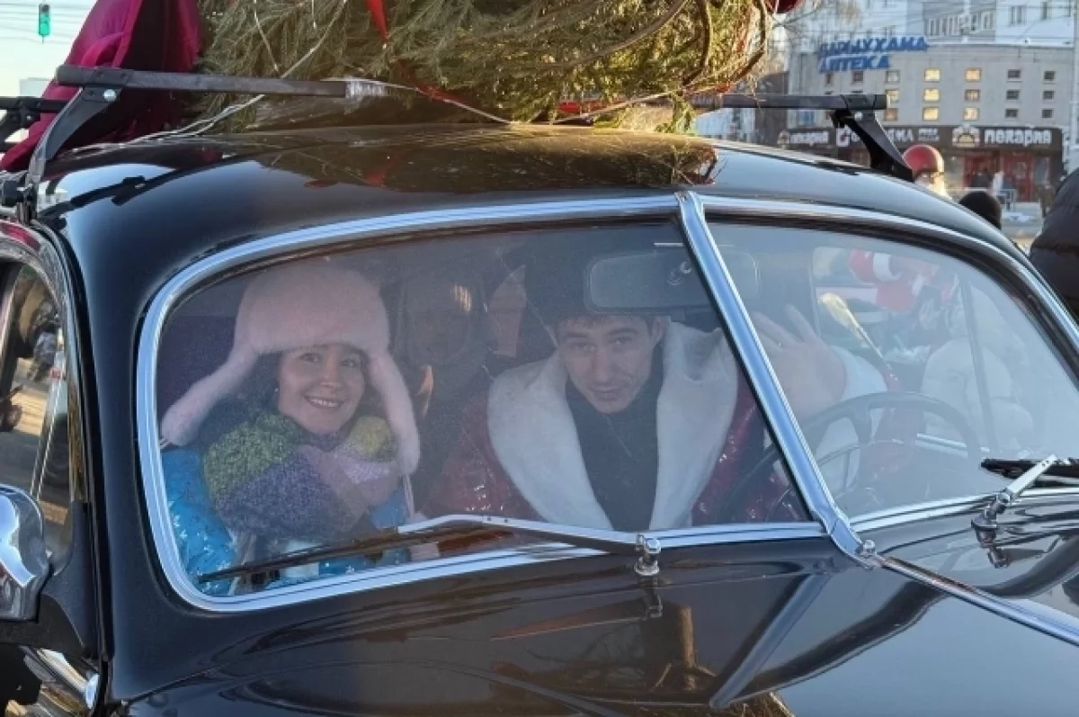 Колонна машин, украшенная праздничной атрибутикой, проехала по городу. Ее сопровождали Деды Морозы и Снегурочки. Все желающие могли сфотографироваться со сказочными персонажами.
