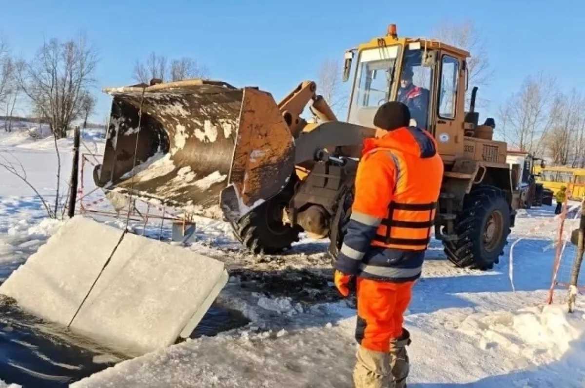 Рабочие должны напилить более 500 ледяных плит. Их отправят в Демский парк и сквер у Дворца творчества «Орион».
