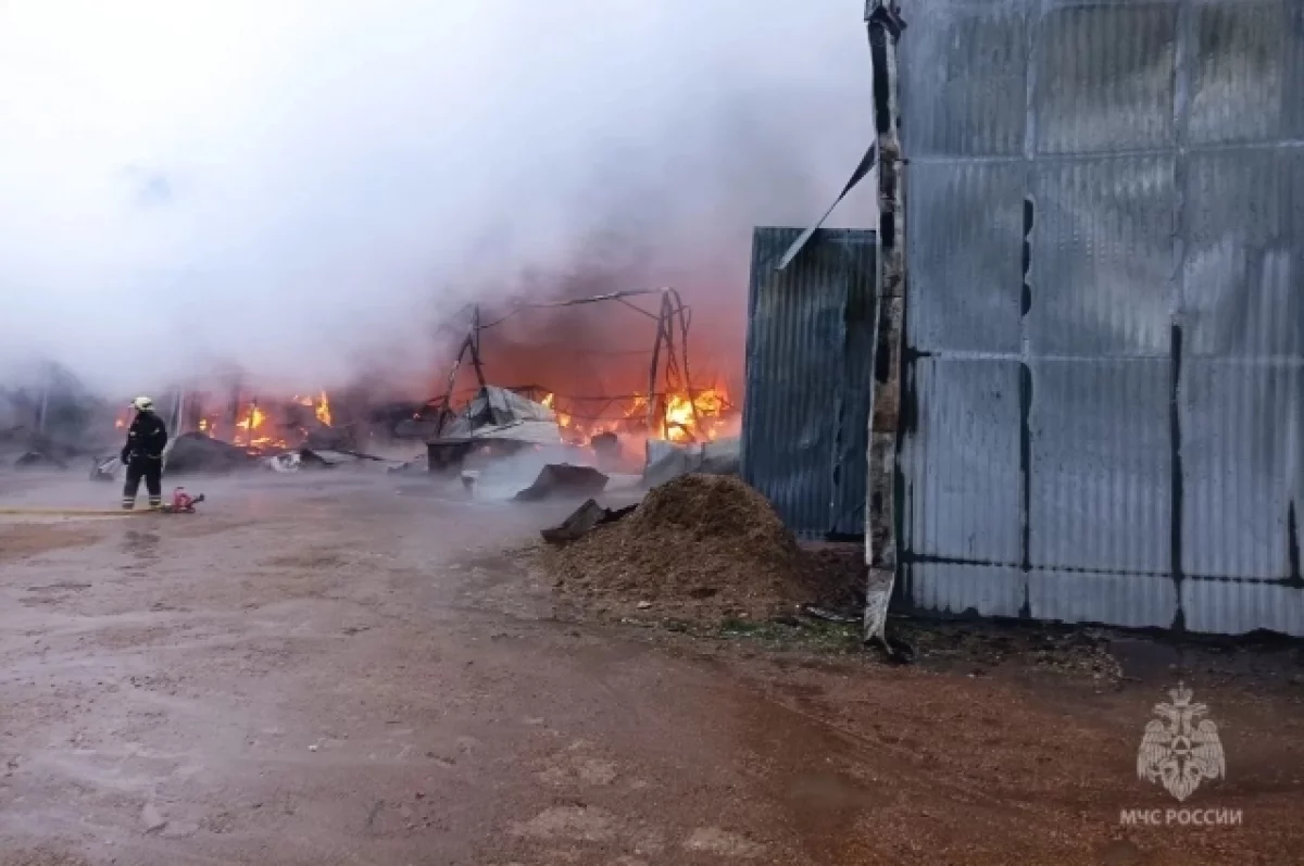На месте работают спасатели и техника МЧС, а также муниципальной и объектовой пожарной охраны. Погибших и пострадавших нет.