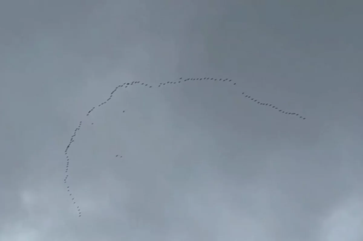 В Уфе стая летящих диких гусей попала на видео. Запись опубликовало Минэкологии Башкирии.