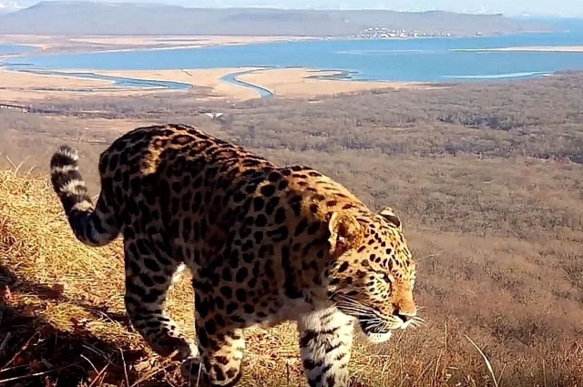 Молодой леопард попал на видеокадры на фоне Владивостока