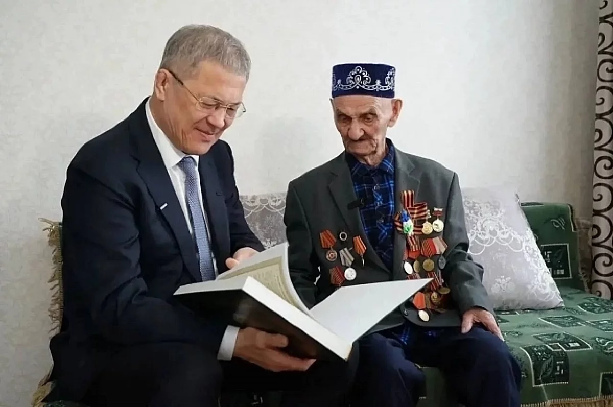«Желаю многоуважаемому ветерану крепкого здоровья и бодрости духа! Запланировали встретиться с ним еще через год, когда он будет праздновать свое 100-летие.», — заявил Хабиров.
