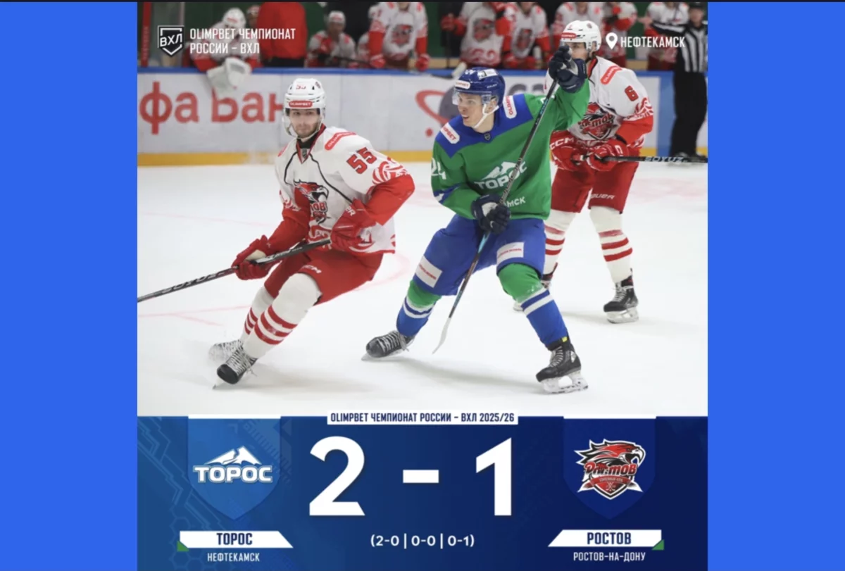 Накануне нефтекамский «Торос» одержал непростую победу в рамках Чемпионата ВХЛ сезона 2025/26. Дома он принимал «Ростов» и выиграл - 2:1.