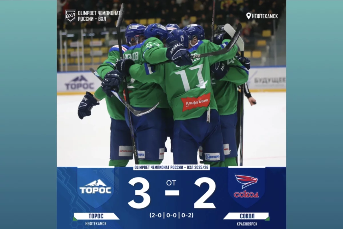 Нефтекамский «Торос» взял реванш у красноярского «Сокола» в рамках Чемпионата ВХЛ сезона 2025/26. В гостях нефтекамцы уступили в овертайме - 3:4.