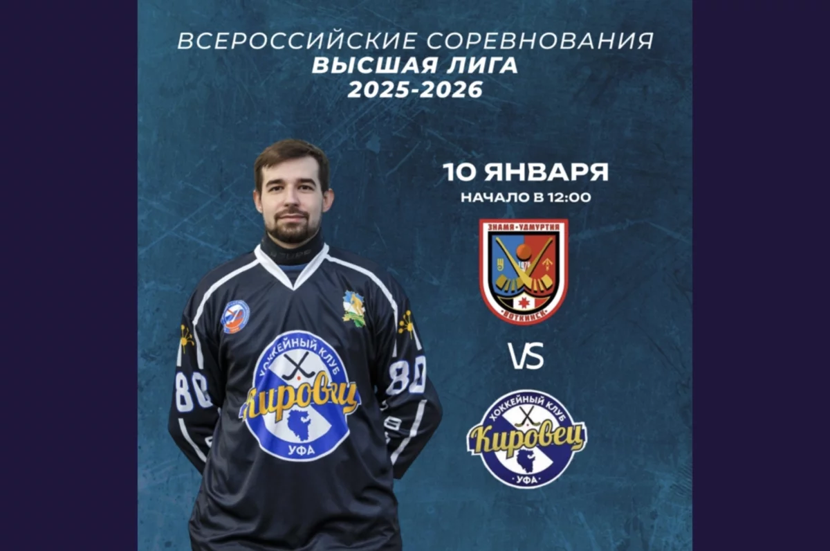 В субботу, 10 января, уфимский «Кировец» проведет первый выездной матч в Чемпионате Высшей лиги России по хоккею с мячом сезона 2025/26. В Воткинске его ждет «Знамя-Удмуртия».