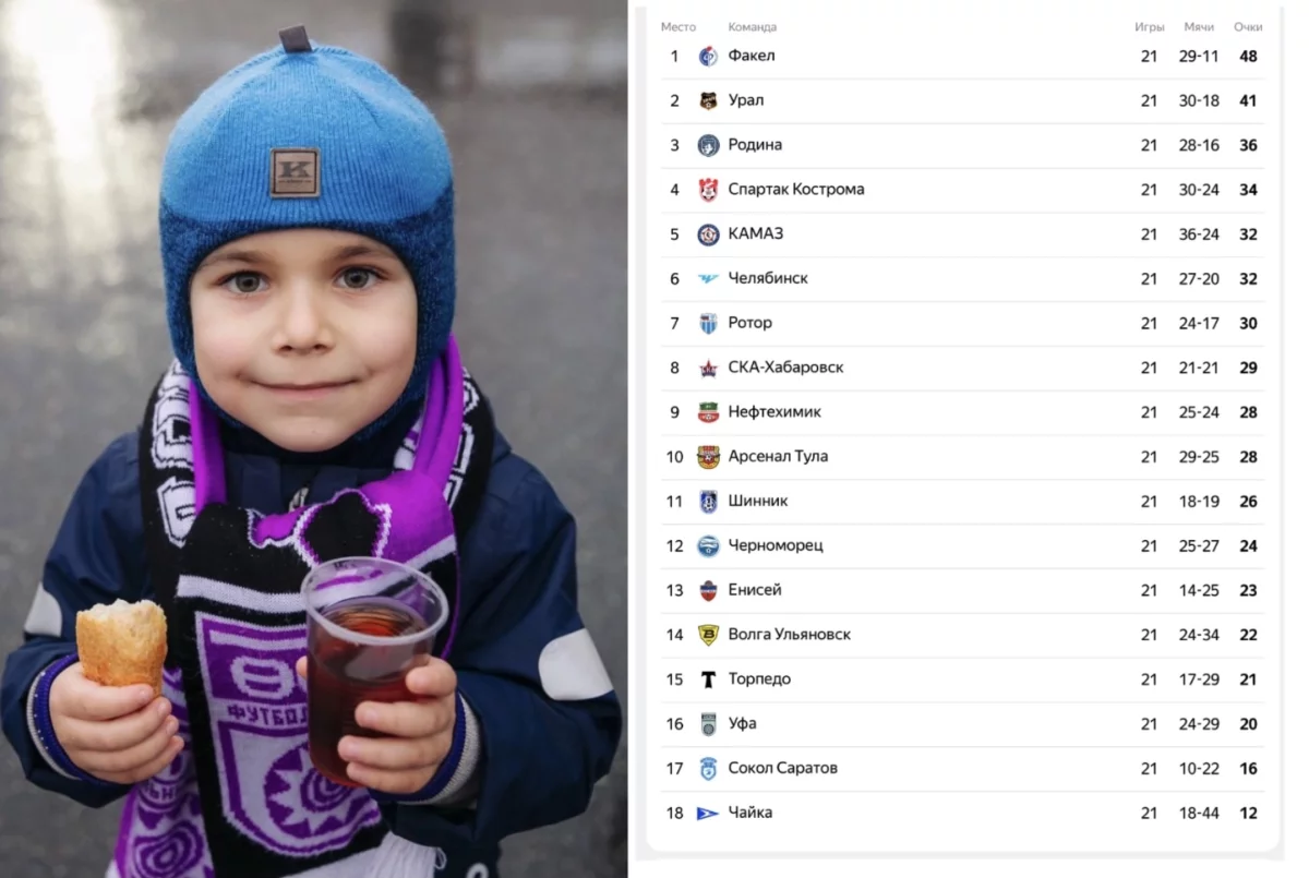 Лидирует с 48 очками воронежский «Факел». На втором месте екатеринбургский «Урал» с 41 очком.