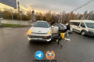 В Уфе легковой автомобиль сбил курьера на электровелосипеде